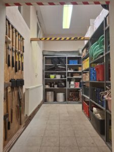 Zelte, Planen, Seile, Beile, Feuertonnen, Zeltstangen, Töpfe, Spülwannen, Feuerlöscher, einen Haufen an Spielen und so weiter. Als Pfadfinderstamm besitzt man so einiges an Material, welches gewartet, gepflegt, sortiert und gelagert werden muss. Über die letzten Jahre wurde es jedoch in unserem Materialraum unter der Marienkirche leider immer unordentlicher. Zudem hatten wir so einige Ideen, wie wir den ganzen Raum besser nutzen könnten.